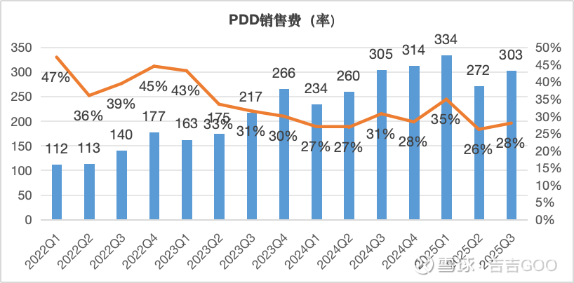综上,由于拼多多在降低货币化和客单价,呈现为单量增速(15%)>GMV增速(11%)>广告收入增速(8%);而阿里在提货币化,呈现为收入增速(10%)>GMV增速(3-4%)。还需要留意的是由于竞争淘天不得不付出更多费用,而拼多多主站费用开支保持温和,两个平台的利润都保持稳定。