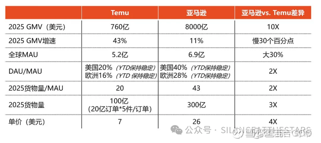 虽然GMV只有Amazon的10%,但TEMU的货物量已经达到Amazon的1/3,我们讲过在零售业,单量的重要性远超过GMV。