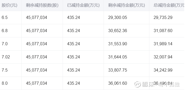 极端情况:若股价跌至6.5元,总减持金额约2.97亿元,仍可完成大部分套现目标,但将比预期减少约2300万元。