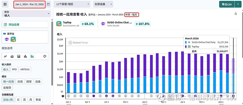 $赤子城科技(09911)$ 赤子城科技旗下核心产品SUGO与TopTop,在中东地区2026年3月日均收入达9.6,已超越2025年12月高峰期的日均9.4。在2026年收入连续两月环比下滑后,公司月度收入有望再度刷新历史新高。不知道空头在博弈什么预期,肆无忌惮加空,相信事实和数据,买定离手,等周四晚开奖