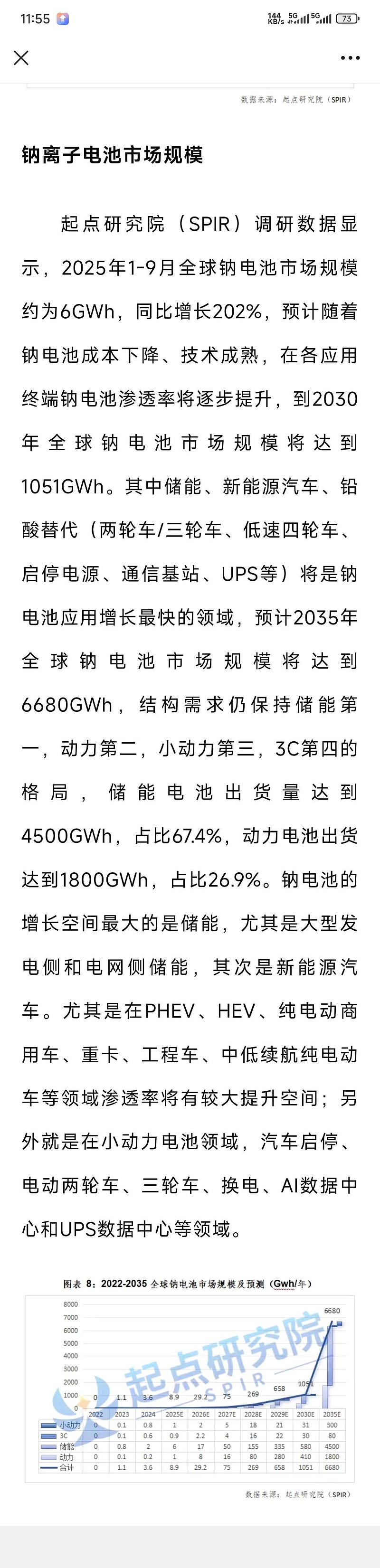 预计2035年全球钠电池市场规模将达到6680GWh。