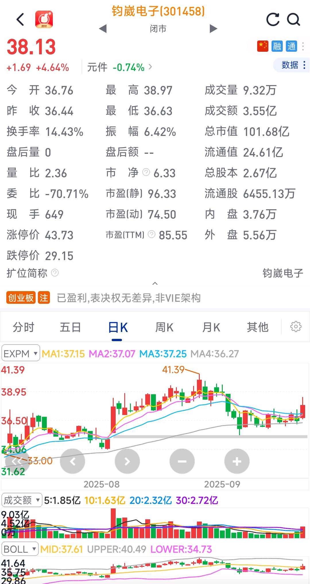 1. 股价走势:上市首日开盘价41.01元/股,涨幅超294%,展现出市场对其较高的关注度和期待。今年以来股价整体有一定波动,截至近期,股价在波动中呈现一定上升趋势,今年以来股价涨3.62%,近5个交易日涨3.65%,近60日涨16.32% ,但较年内高点仍有一定跌幅(如股价较年内高点下跌38% ,投资者曾对此质疑)。