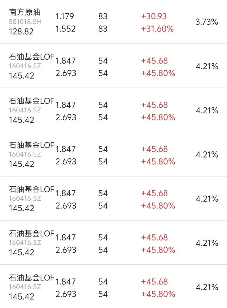 免责声明:文章涉及标的不作为投资推荐,仅为信息分享。任何因本文导致的投资行为发生的亏损,作者概不承担任何责任。市场有风险,投资需谨慎。$石油基金LOF(SZ160416)$ $华宝油气LOF(SZ162411)$ $嘉实原油LOF(SZ160723)$