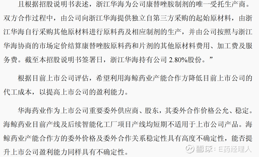 (4)后续利用海鲸药业的产能或产能合作方提升上市公司盈利能力存在不确定性。