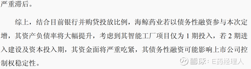 (1)海鲸药业参与本次定增资金存在不确定性。