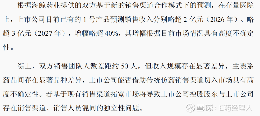看了好几遍没看明白这是要表达什么,但凡做过医药销售的人看到这段描述,怎么看都是“协同”。学术推广+精准营销,这不是很多制药企业梦寐以求的理想模式吗?而且股权结构怎么能够导致销售渠道混同?上市公司独立性怎么会受损?如何受损?百思不得其解……