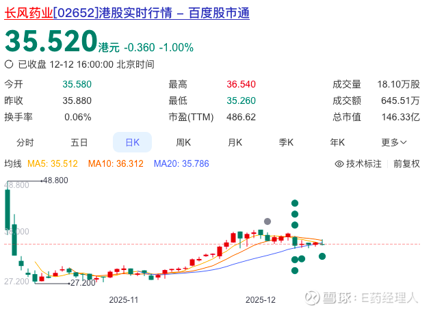 而另一边,是未曾引入基石投资者、长期不声不响的长风药业,却在挂牌首日引爆全场:公开发售超购逾6000倍,开盘股价较发行价14.75港元飙升超200%,虽后续回落至30港元左右,市值仍稳超120亿港元——成为彼时不折不扣的新晋“人气王”。