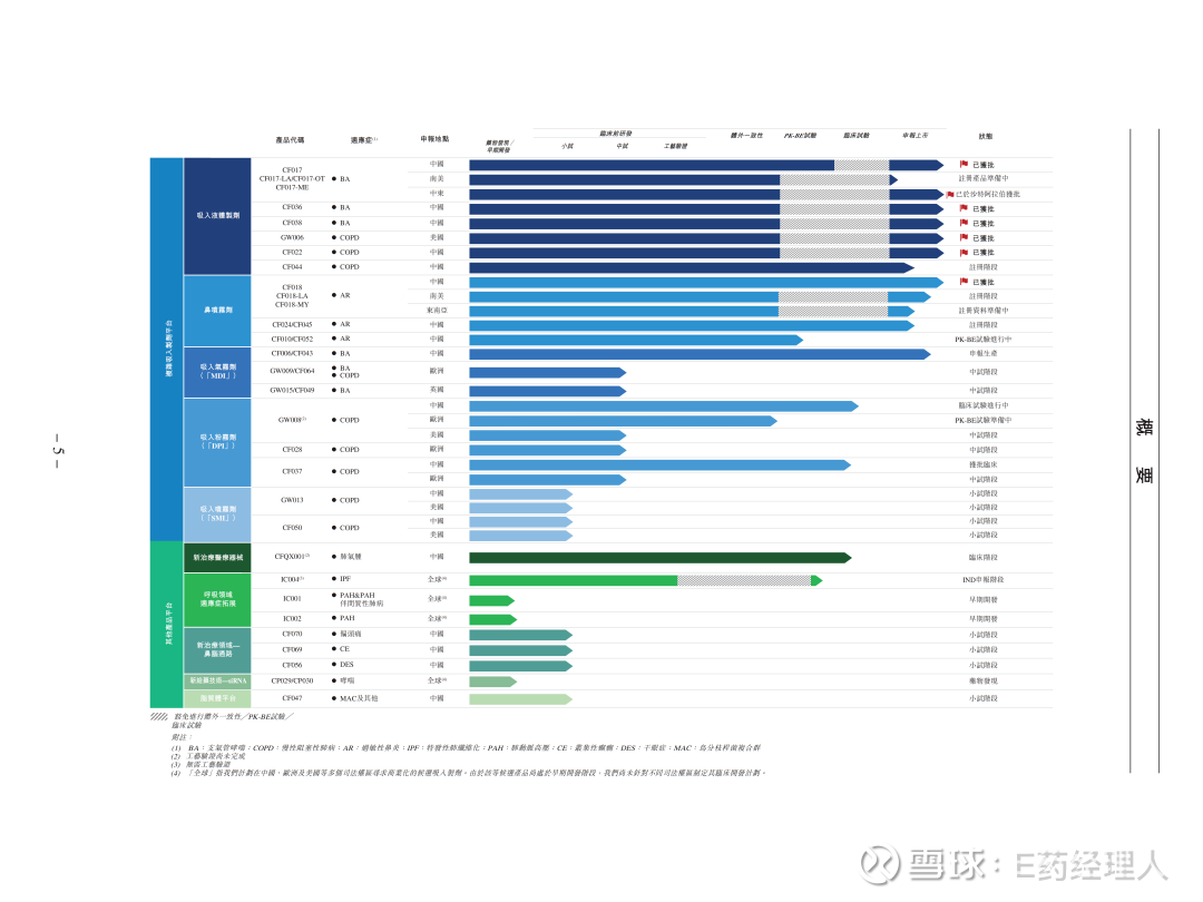 与此同时,随着吸入技术平台越来越成熟,长风药业也不再只盯着仿制药,开始往创新的深水区扎。这样的布局思路也很容易理解,就像“跨栏”:一条腿踩稳成熟赛道,对着哮喘、慢阻肺(COPD)、过敏性鼻炎这些患者多、需求大的病种,继续搞进口替代;另一条腿挑战高难度,专攻创新领域,甚至敢碰特发性肺纤维化(IPF)、肺动脉高压(PAH)这种公认的“硬骨头”,全球首创的肺纤维化吸入创新药。