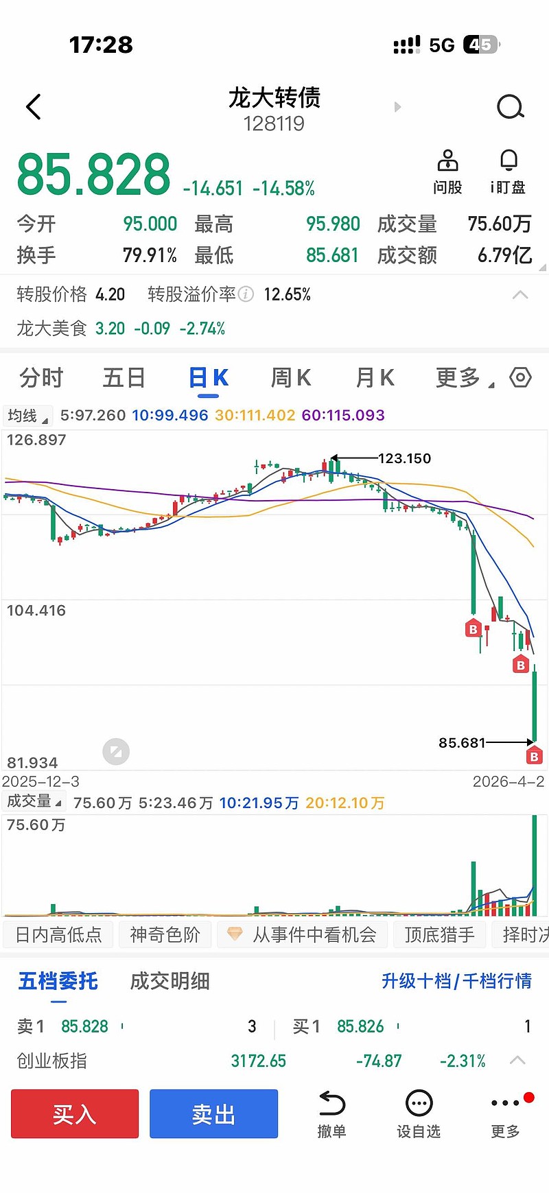 $龙大转债(SZ128119)$