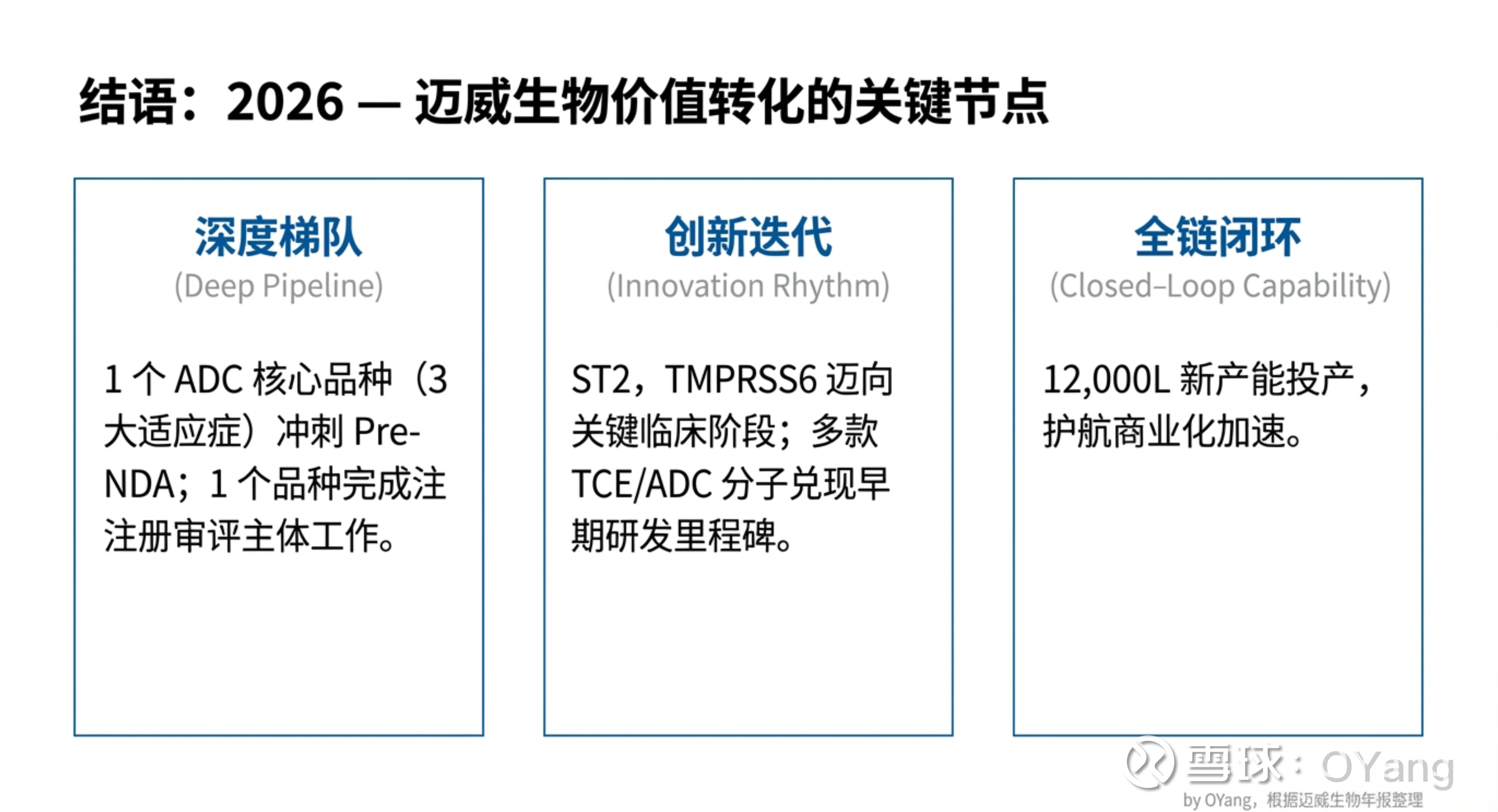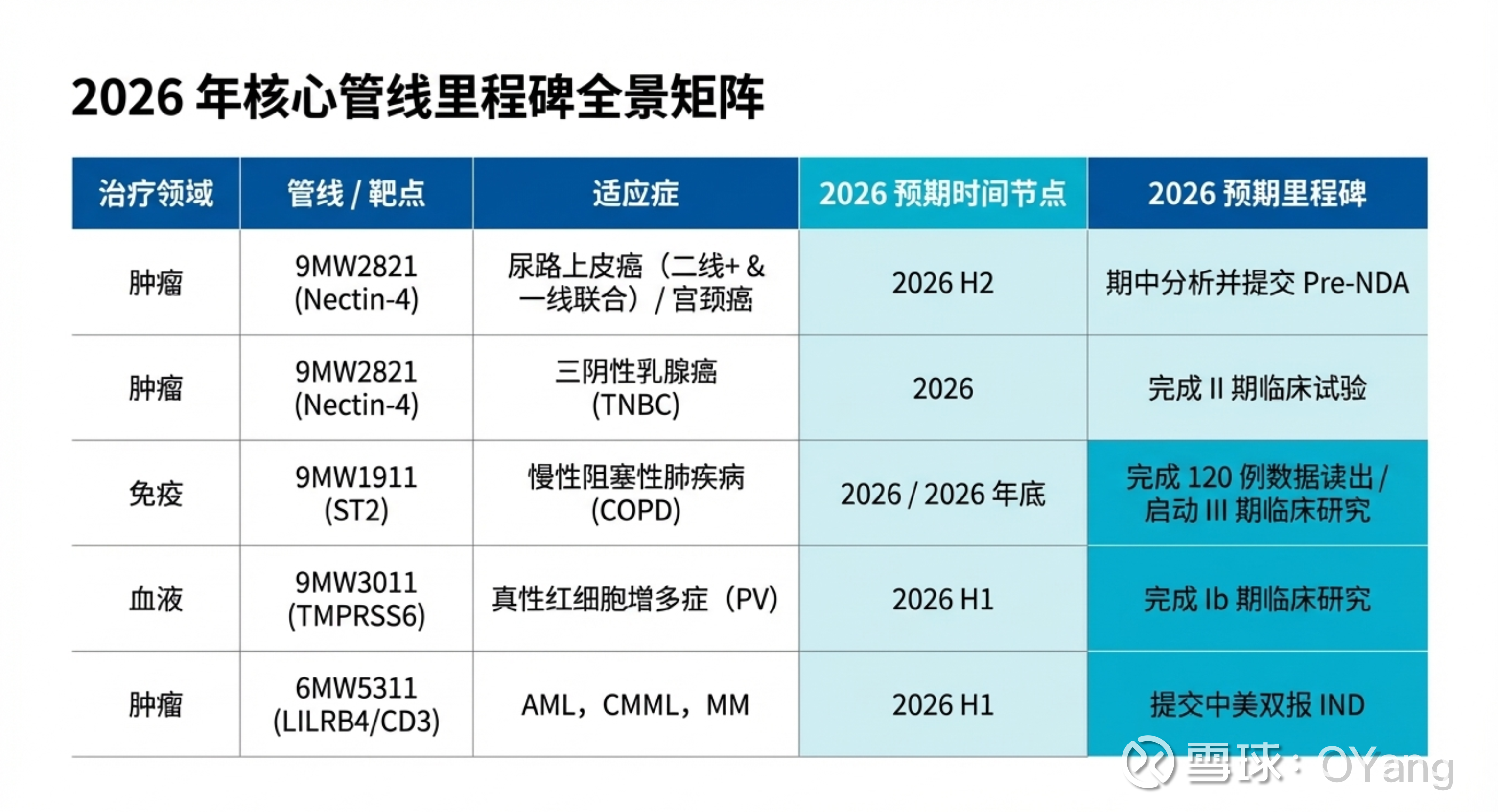 以下信息根据$迈威生物-U(SH688062)$ 2025年年报整理,到年底的时候再来看看多少兑现了。另外还有几条幻灯片没有提及:1)H股上市2)不同阶段包括在谈商务条款的BD3)9MW4113注射液即将披露的是什么生物类似药?4)已经合作的项目的海外进展与里程碑,比如9MW3011.
