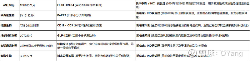 #药闻简讯# 2026年3月26日,首次进入临床的管线有: