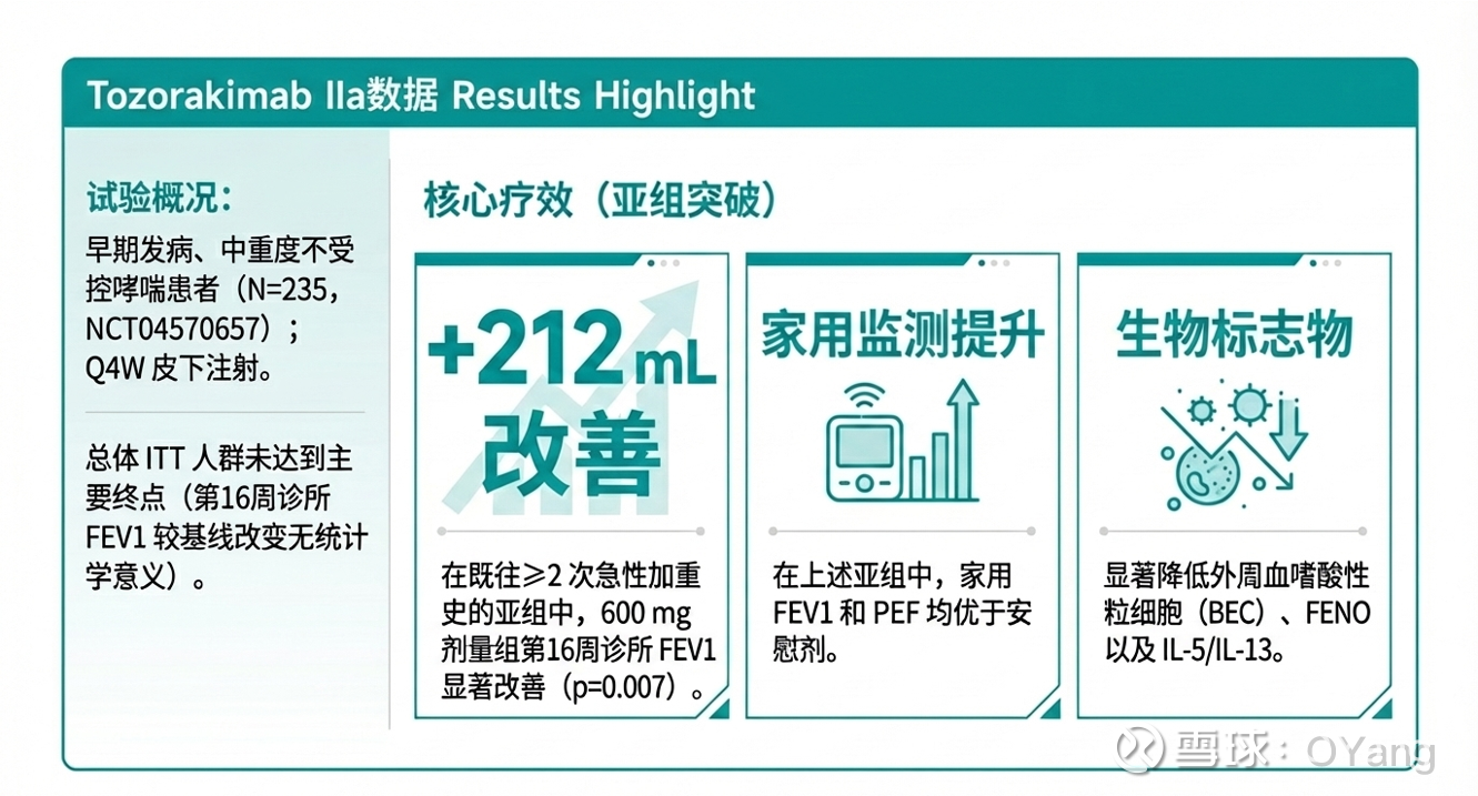 今天对于中重度慢阻肺患者/COPD社区或许是一个值得欢喜的日子,阿斯利康Tozorakimab在2项三期OBERON和TITANIA试验项目上迎来的积极数据:长效,不限制患者群体背景的涵盖广泛COPD人群(如不考虑吸烟状况和嗜酸性粒细胞水平)等。