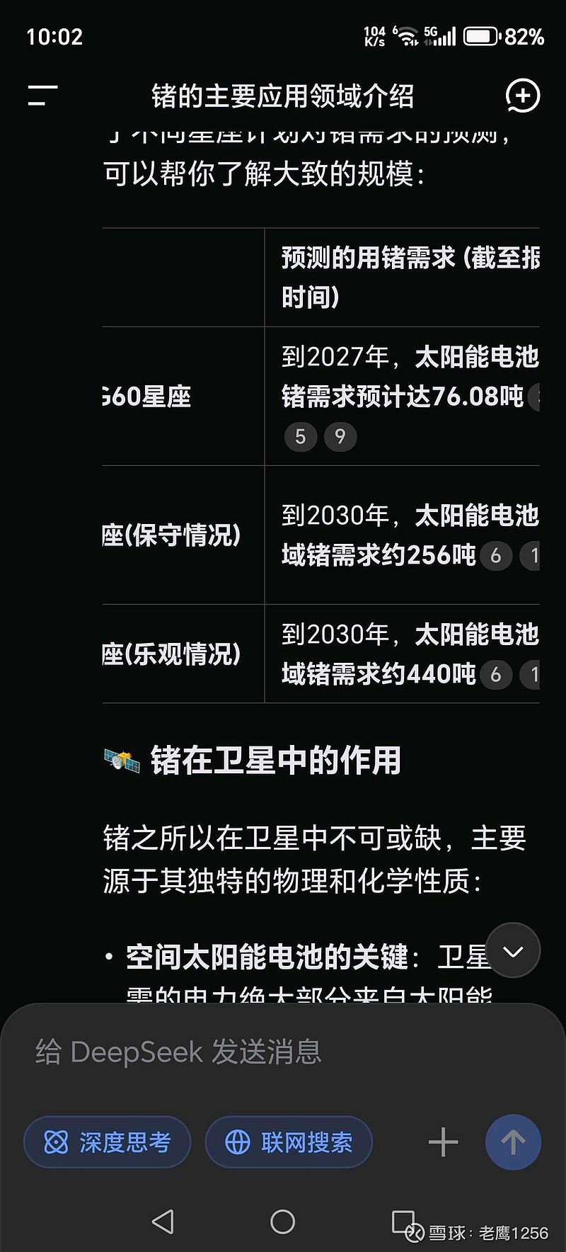 $中矿资源(SZ002738)$ 锗是卫星太阳能电池关键稀有金属,仅星链,中国版1.3万星座卫星,都供不应求,后面几年涨到1万美元/公斤都有可能。太空算力可能锗用不起,用掺铯的钙钛矿电池比较实际。中矿是全球铯和锗最大玩家。