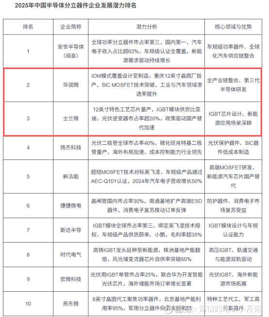 5、6、8、12 吋芯片生产线均满负荷运转,成都封装基地也实现满产。更关键的是,子公司士兰明镓已具备月产 0.9 万片 SiC MOSFET 芯片的能力,基于 Ⅱ 代芯片的电动车驱动模块已批量供货,Ⅳ 代产品正在客户端验证,2025 年即可量产 —— 完美对接安世停滞的 SiC 模块需求。厦门 8 英寸 SiC 产线预计年底通线,未来产能规模可达 3.5 万片 / 月,进一步夯实供给能力。