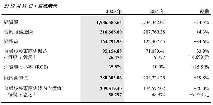先来看一下25年报表的亮点,保险公司看股东权益增长比净利更可靠