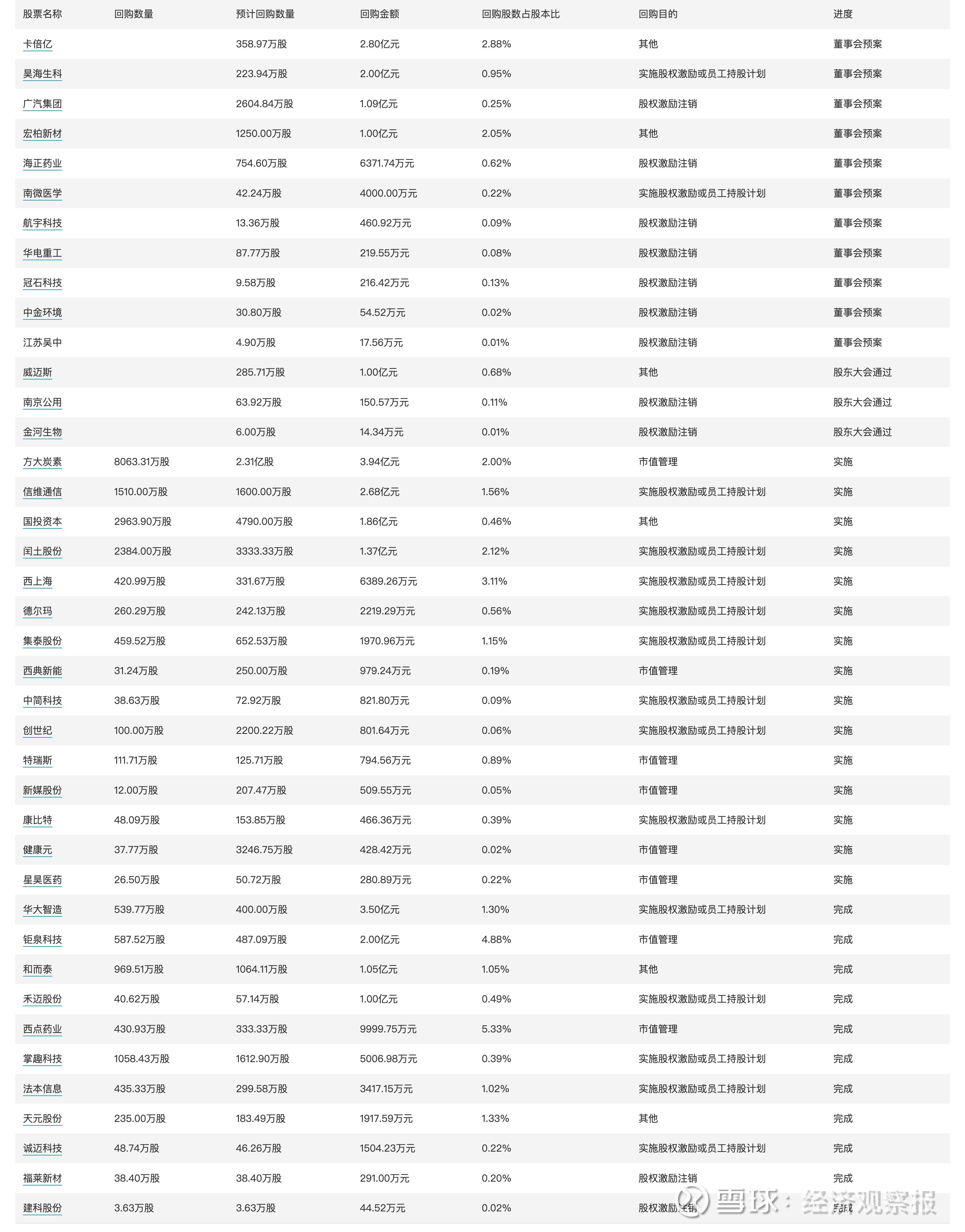 7、41家公司披露回购进展