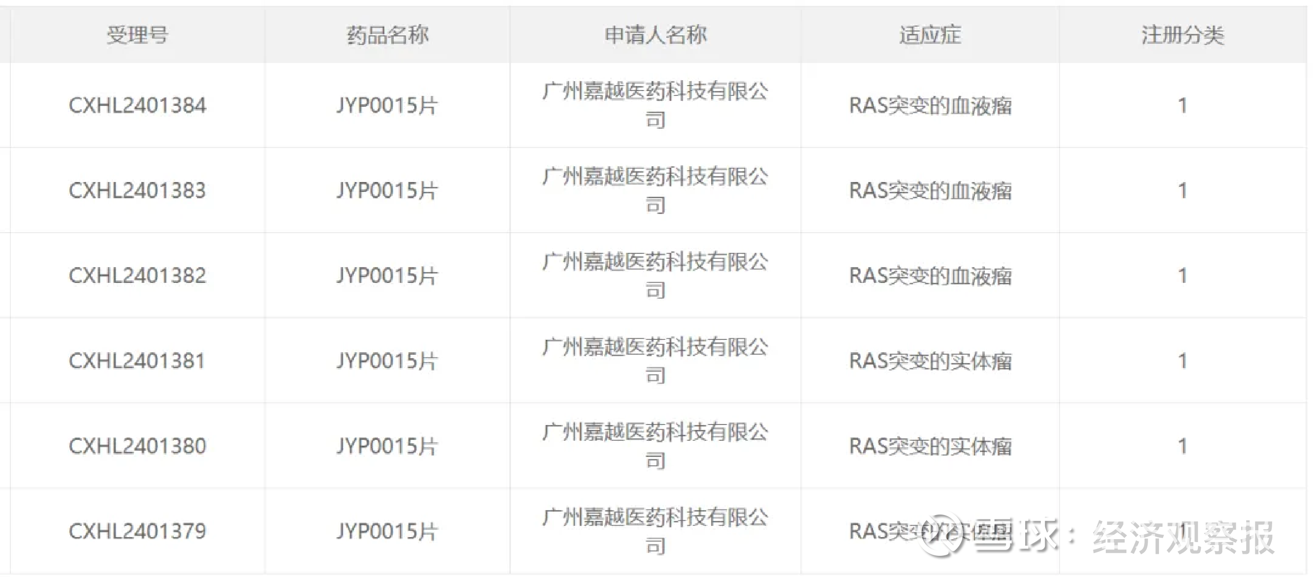 经济观察网讯 2月21日,中国国家药监局药品审评中心(CDE)官网最新公示,嘉越医药申报的1类新药JYP0015片获批多项临床试验默示许可,拟开发治疗RAS突变的血液瘤、RAS突变的的实体瘤。公开资料显示,JYP0015是一款泛RAS抑制剂,为一款分子胶产品。2024年5月,嘉越医药已经与ERASCA公司达成一项全球独家授权协议,将JYP0015在中国内地和香港、澳门地区之外的全球独家研究、开发和商业化权利授予后者。该项协议的总金额达3.45亿美元。
