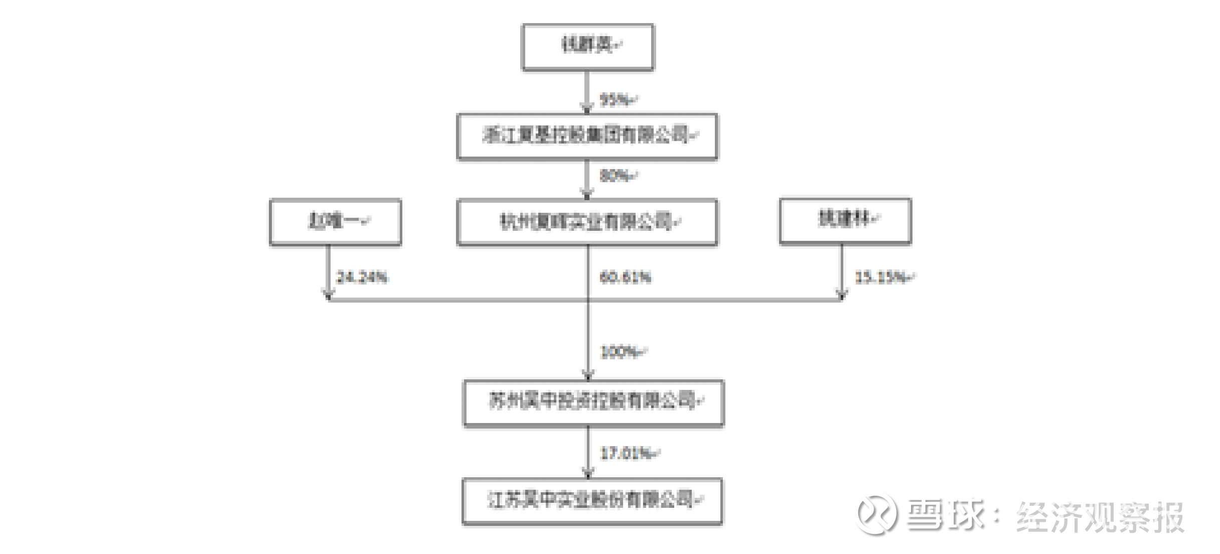 2018年2月,钱群山的姐姐钱群英通过股权转让交易,取得江苏吴中的控制权。具体交易路径是:苏州吴中投资控股有限公司(下称“吴中控股”)股东夏建平、阎政、罗勤、钟慎政、沈赟、金建平、金力与杭州复晖实业有限公司(下称“复晖实业”)于2018年2月2日共同签署了股权转让协议,夏建平等七人将吴中控股60.61%的股权转让给复晖实业,交易价格约为7.07亿元。彼时,吴中控股是江苏吴中的控股股东,持有上市公司17.01%的股权。股权关系上,钱群英通过浙江复基控股集团有限公司持有复晖实业80%的股权,钱群英是复晖实业的最大股东。