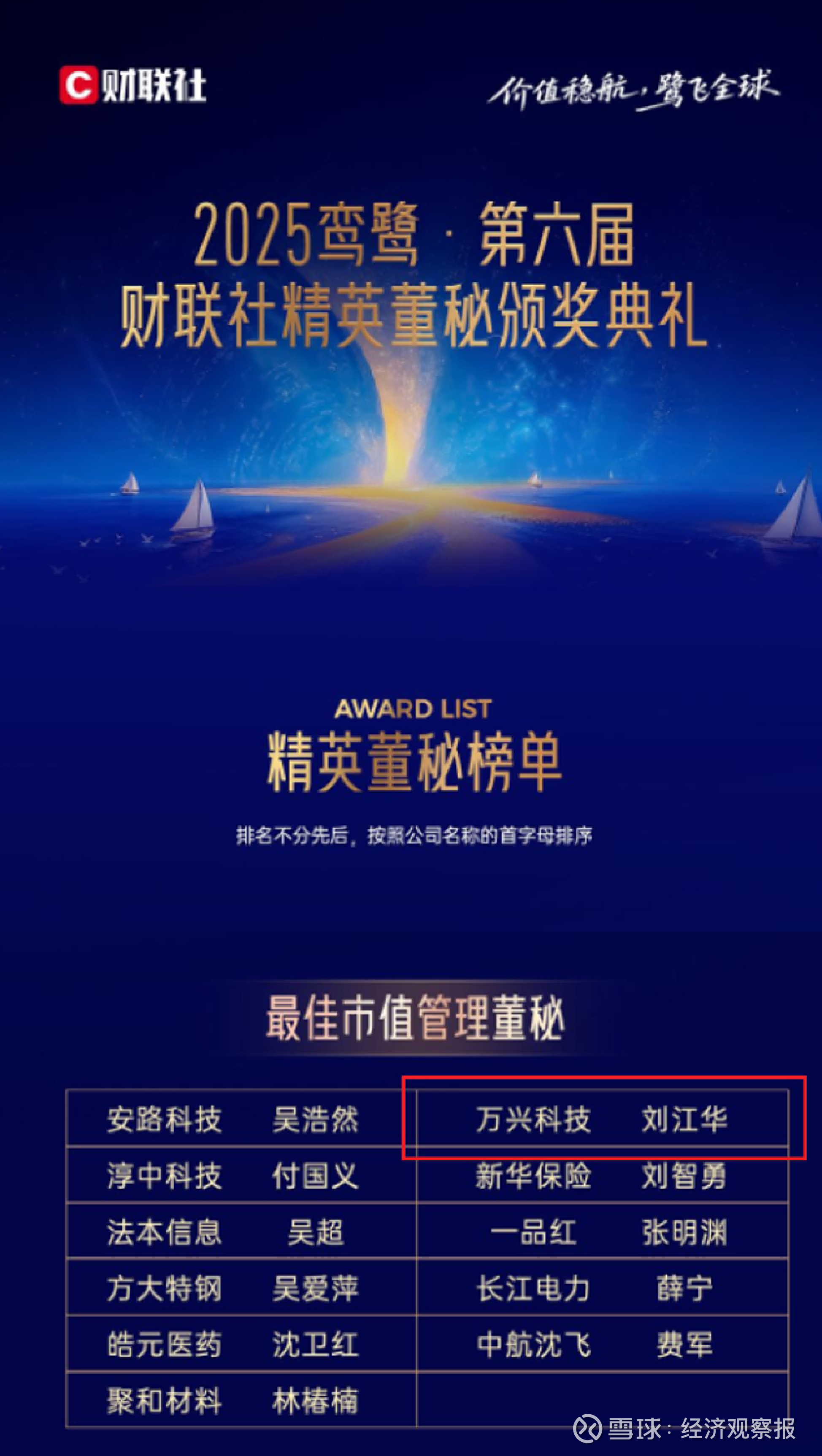 (万兴科技董秘刘江华斩获第六届财联社“精英董秘榜单”)