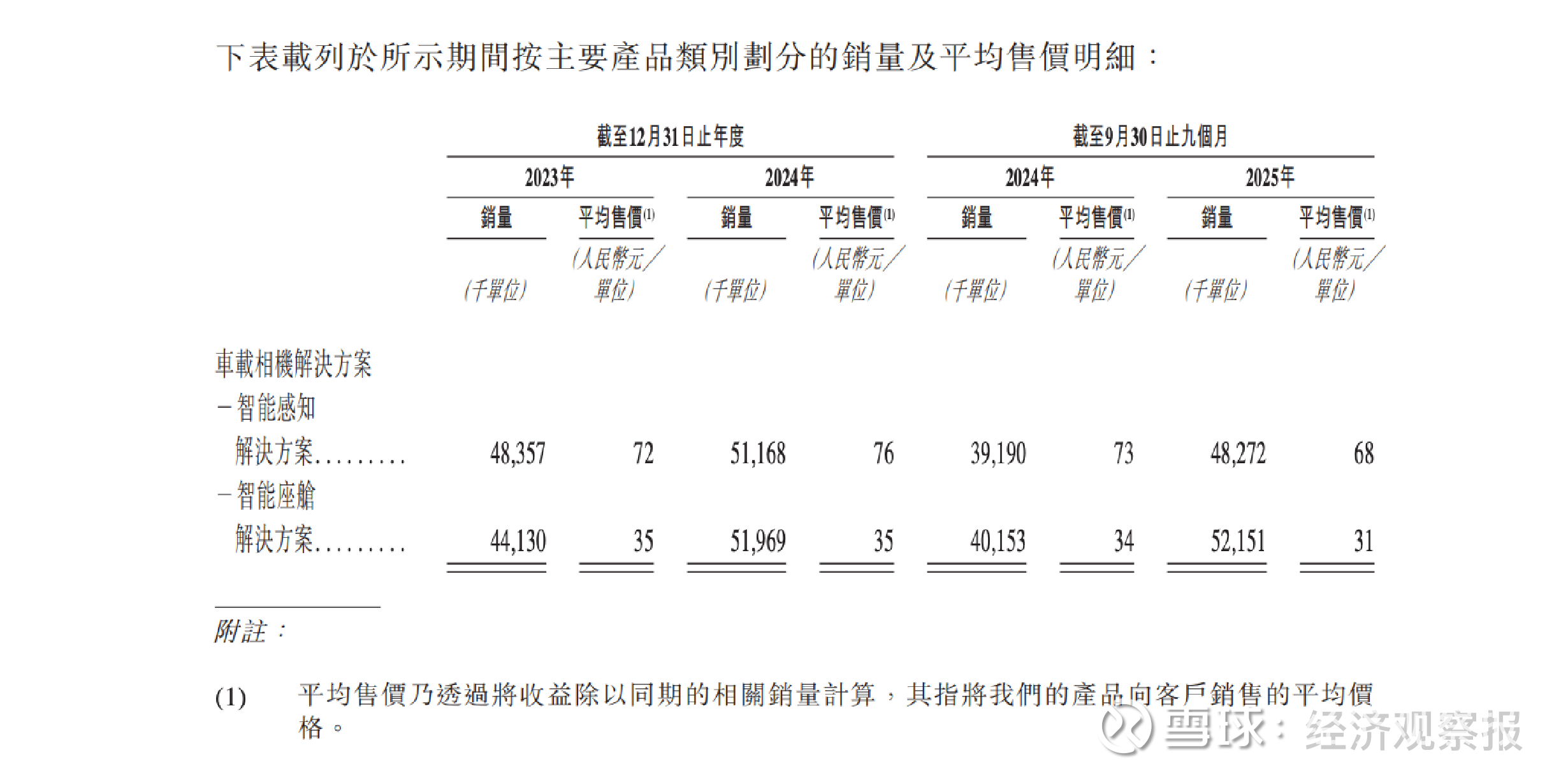 招股书显示,公司智能感知相机与智能座舱相机的平均售价均呈下行趋势。智能感知相机单价由2024年的约76元下降至2025年前三季度的约68元;智能座舱相机同期亦从约35元降至31元。价格下行的同时,公司出货量持续增长,成为拉动收入的主要变量。