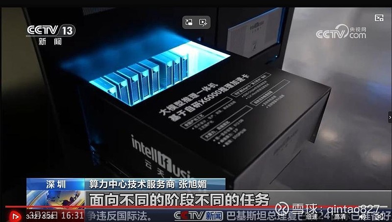 $云天励飞-U(SH688343)$ 云天励飞的带品牌logo的算力芯片卡出现在昨晚的央视新闻频道,是上面意识传递,也是国产可控的宣传,央视也提到了广东省湛江市今年首个全面国产可控的智算中心建设,由deepseek大模型+云天励飞的Ai算力推理芯片卡搭建,没有用华为和寒武纪的算力推理芯片,后面广东省和四川省多个城市肯定越来越重视,逐渐落地签合同。