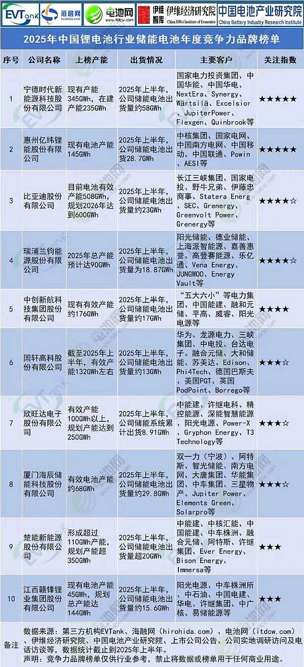 企业简介:瑞浦兰钧(00666.HK)于2017年成立,2023年12月于港交所上市,是世界500强企业青山实业在新能源领域布局的首家企业,主要从事锂离子电池的研发、生产、销售,为新能源汽车动力及智慧储能提供解决方案。公司在上海、温州、嘉兴设有研发中心,在温州、嘉兴、柳州、佛山、重庆设有生产基地,在印度尼西亚布局的首个海外电池厂正在建设中。2025年,公司总产能预计可达90GWh。公司储能客户包括阳光储能、德业储能、上海派智能源、嘉善惠誉、高登赛能源、乐亿通、Vena Energy、JUNGWOO、Energy Vault等。2025年上半年,公司储能电池出货量为18.87GWh,同比增长约119.3%。