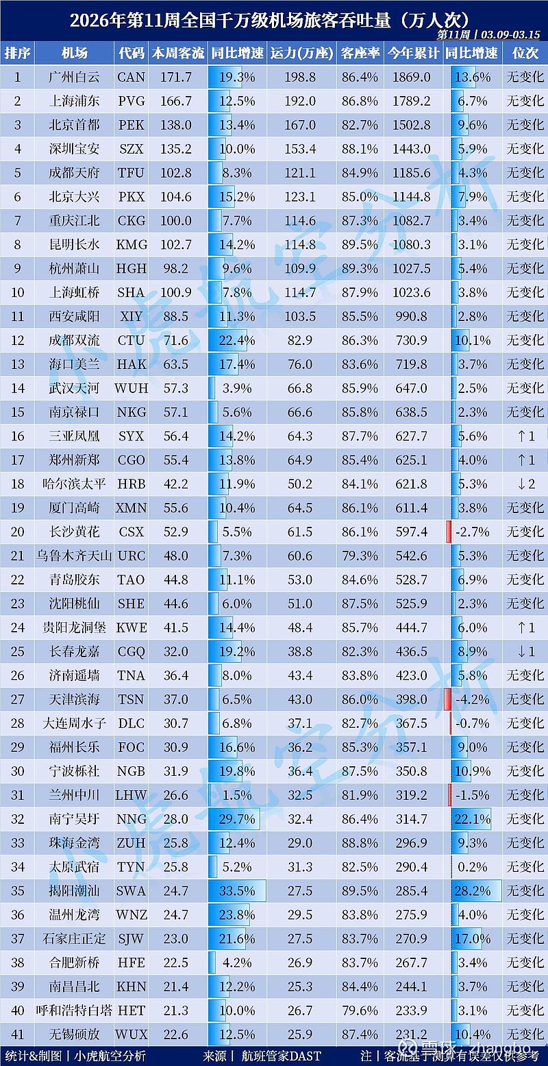 截止3月15日,北京首都机场客流量1502.8万,同比增加9.6%