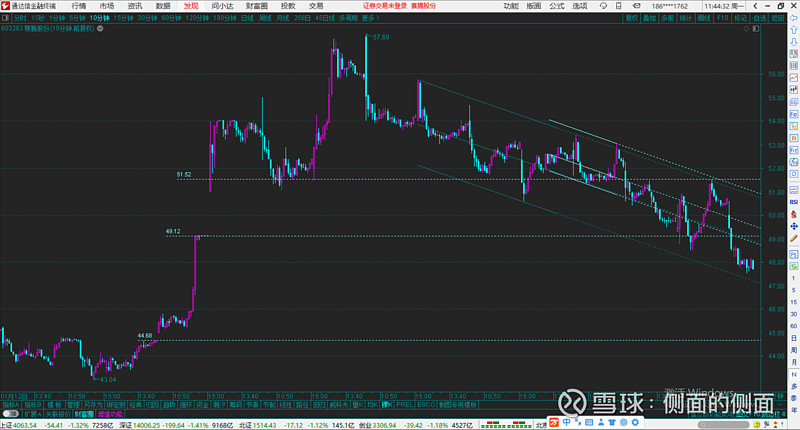综合来看,该股大跌到前面中枢区域(中位值42元)的可能性不大,除非上证有300点左右的回调。