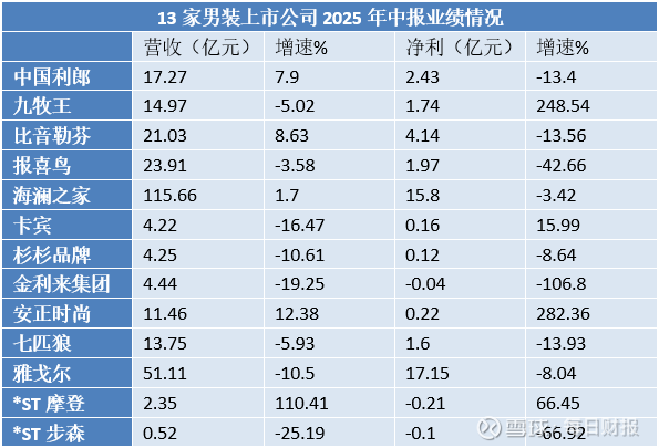 值得注意的是,安正时尚成为其中罕有的“双增”企业,营收与净利润均保持两位数增长,显示其运营策略在当期取得一定成效。然而纵观全局,男装板块中仅此一家实现全面正向增长,其余企业或多或少面临业务结构的挑战。