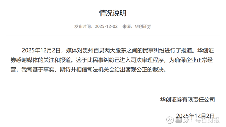 就在公告的前一天(12月2日),华创证券发布情况说明表示,鉴于此民事纠纷已进入司法审理程序,为确保企业正常经营,公司基于事实,期待并相信司法机关会给出客观公正的裁决。