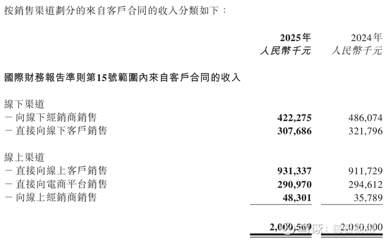 燕之屋加强线上销售渠道的布局,未能填补线下销售渠道的萎缩。2025年,燕之屋在线下销售渠道实现收入为7.30亿元,同比减少9.64%。其中,燕之屋向线下经销商收入减少金额较大。