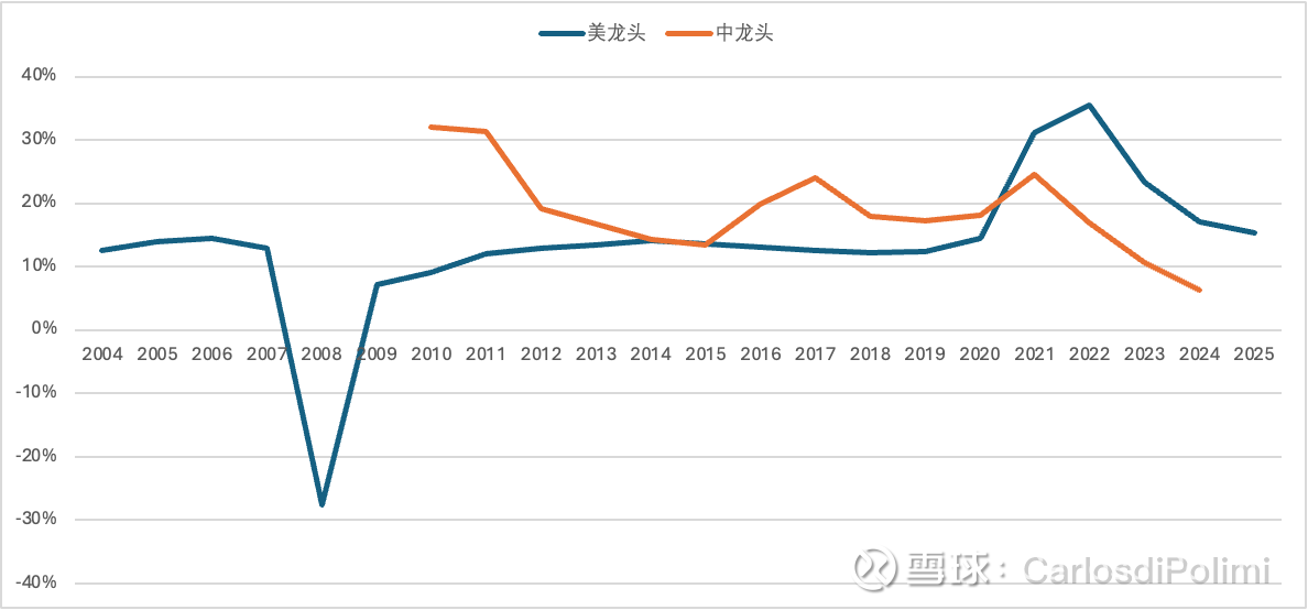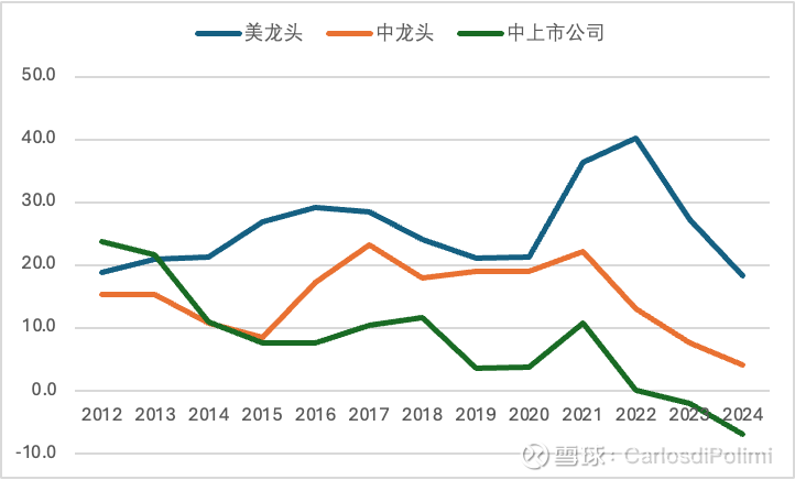 在计算了中美一些上市公司的资本回报率后,说实话,比较超出我的预期。尽管ROIC并不是特别高,但是美股的公司十分稳定,成熟的行业发展阶段、本地化服务属性以及法律保护的特许经营权可能是其原因。
