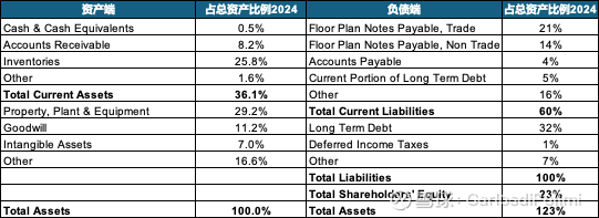 这里再提一嘴美国的经销商融资的一个特殊项目,主要体现为财报的Floor Plan Notes Payable。在计算ROIC时,将其视为有息负债还是经营性应付,会极大影响结果,在上文的ROIC计算里我将其视为有息负债。不视为负债的结果可以再提升ROIC10个点,即达到20%+。