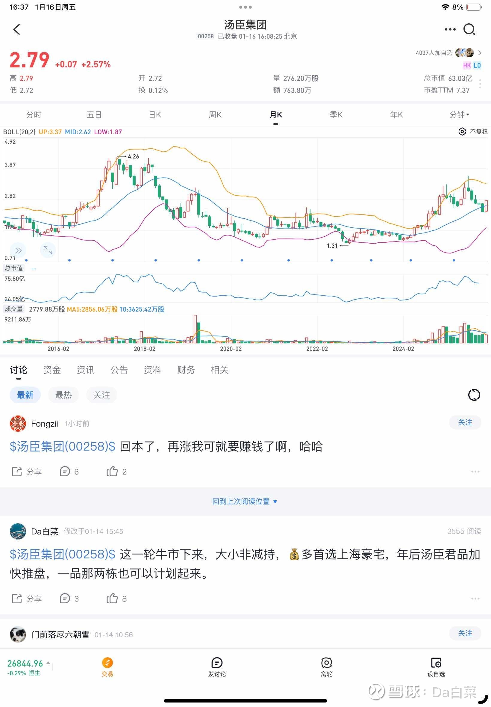 $汤臣集团(00258)$ 在可预期的几年内,汤臣大概率会是唯一一个,股价能回到并超过历史高点的内房股,简单从资产角度看,六七年前张江君品的地块仅仅按土地成本价30亿入账,现在市场价起码200亿,而整个汤臣的清算价值,也差不多两倍以上于当时,再加上开发推盘加快,确定性也大大增加,也就是折现加速了。