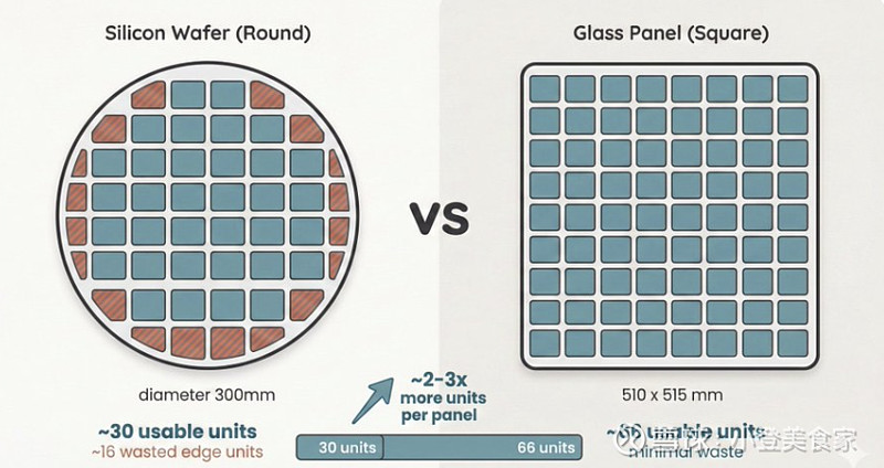 但硅中介层占的是台积电的晶圆产能,回到麦满分的比喻:厨房就四个灶,炒鸡蛋要占两个,留给煎培根的灶就不够了,做桥和做芯片在抢同一条产线。成本也很高,一块大号硅中介层成本超过100美元,光中介层就占封装成本的一半以上,到2028年,封装一颗顶级AI芯片预计要花1300美元。尺寸也有极限,硅中介层从圆形晶圆上切割,同样受良率限制,性能到位了,但价格和产能跟不上。AI芯片需求在爆发,最好的桥反而成了最大的瓶颈。