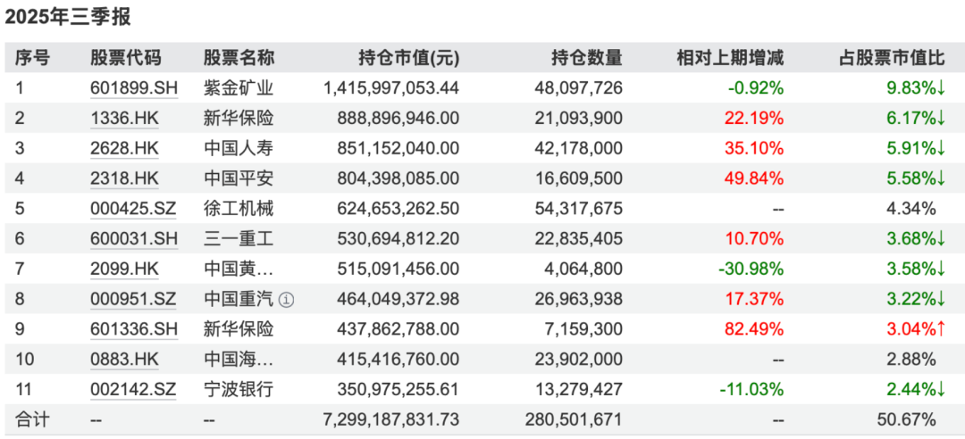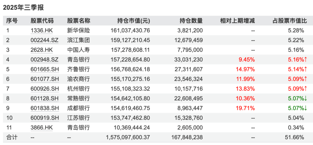 又比如杨景涵管理的华泰柏瑞新金融地产A,甚至是在三季报新建仓新华保险和中国人寿。