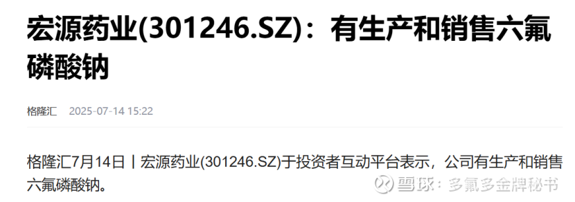 小结:宏源药业有六氟钠小规模出货,约100吨左右,这种量只是给电解液厂家送试用装,没有用于商业化的出货。