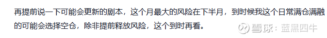 我只对自己账户负责,在上涨尤其是大涨期间谈左侧风险可能是疯了,再尤其是全网一直极度看多之时,权当给各位一个善意提醒,虽然剧本一路下来蒙的都挺对,但最后这下我自己都没底,别盲目相信,还是那句话,能为你账户负责的只有你自己!!!