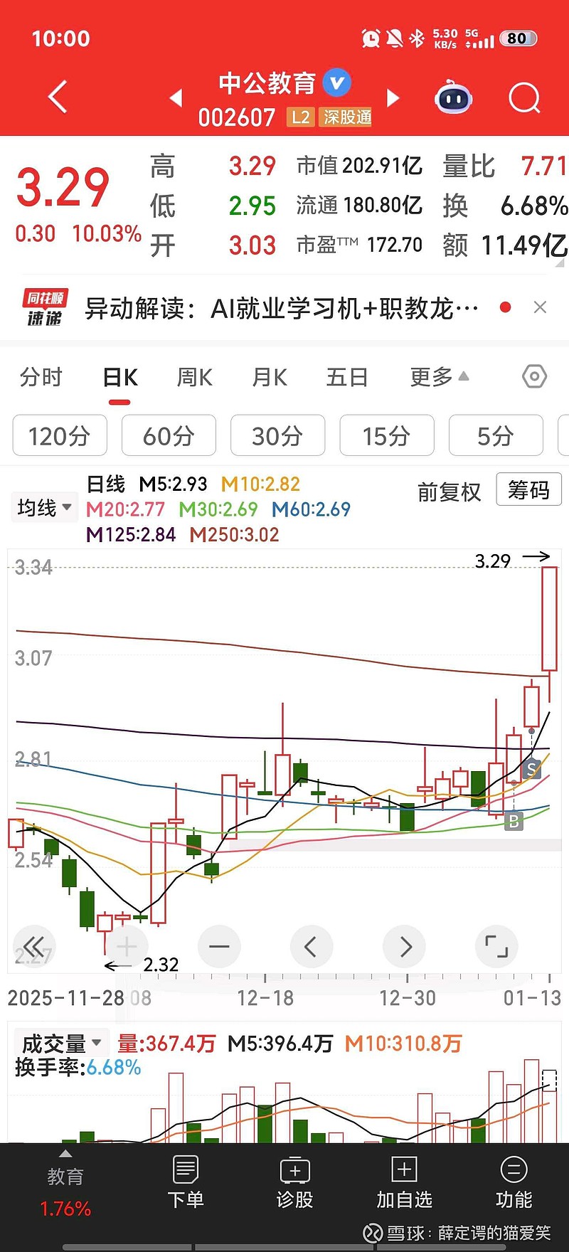 $中公教育(SZ002607)$ 要被自己蠢笑了,上周五,我看ai不错,买了中公教育,然后周末复盘,感觉中公不跟ai,还有个人一直说中公欠他2万块![]()