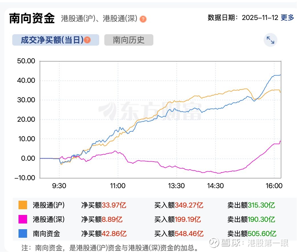 资金方面,南向资金继续净买入港股。截至收盘,南向资金累计净买入港股42.86亿港元。