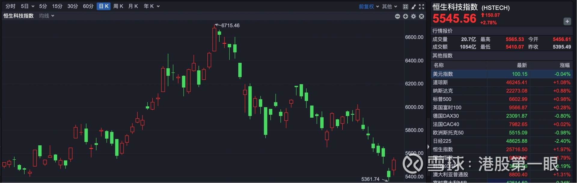 恒生科技指数报收于5545.56点,上涨150.07点,涨幅2.78%。