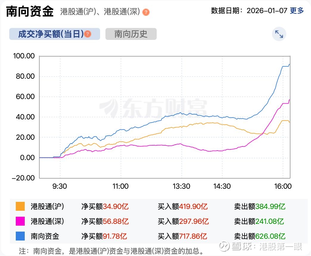 资金方面,南向资金继续大规模加仓港股。截至收盘,南向资金净买入港股超91亿港元。