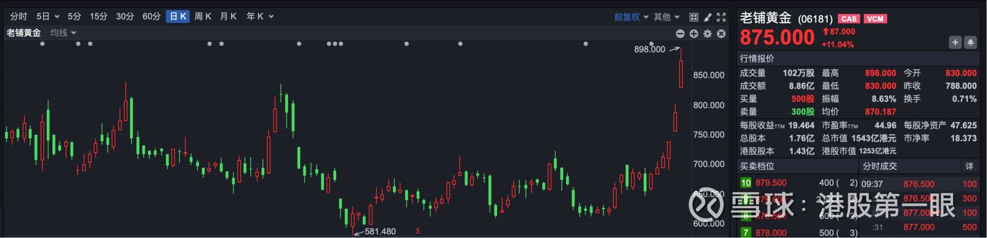 此外,新消费概念继续转暖,老铺黄金(HK06181)早盘涨超11%。