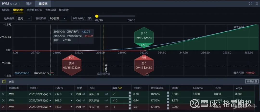 总而言之,这次对IWM的操作是一个高信念、高杠杆的事件驱动型交易。只要9月15日前IWM上涨2.5%并站稳242美元以上则成功。该策略清晰地界定了“最大亏损有限,潜在回报无限”的非对称风险结构,是精准利用期权工具来放大特定市场观点的经典案例。