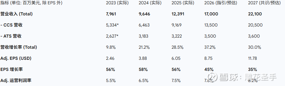 增速错位: 在 2024 和 2025 年,当营收增长维持在 21%-28% 的健康区间时,其 Adj. EPS 增速却持续维持在 56%-58% 的超高水平,约为营收增速的 2 倍以上 。