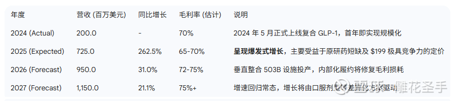 。预计到 2026 年底,公司将通过内部设施履行大部分复合 GLP-1 订单,从而大幅提升利润空间 。