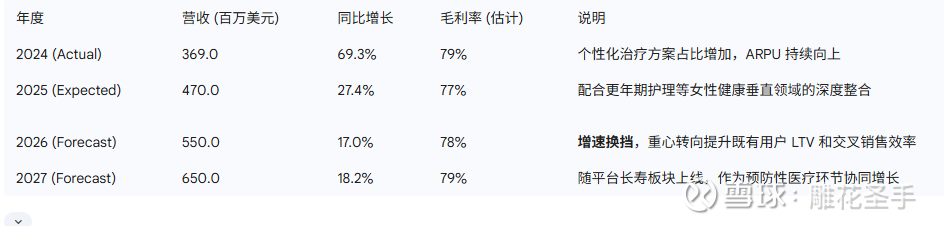 诊断与 Labs 服务:2025 年底上线的“全身实验室检测(Labs)”是 2026 年的核心支撑。用户可进行无痛血液采样(YourBio 技术)并实时在 App 中追踪激素及生物标志物,这标志着公司从“病后治疗”向“预防性健康管理”的范式转变 。
