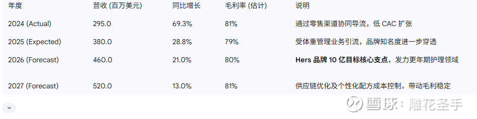 分析:超过 75% 的用户选择个性化定制方案,溢价能力强。Hers 品牌的目标是 2026 年实现 10 亿美元总营收