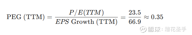 报表中显示的 PEG 0.35 并不具备直接投资参考价值。其计算公式为: