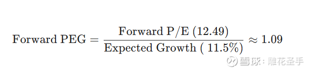 亮点: 修正后的 Forward PEG 约为 1.1,表明公司在剔除会计噪音后,其估值相对于增长潜力处于行业合理且偏低水平![]()